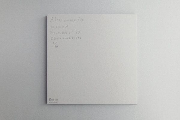 目的なく撮られた写真をまとめてみると、そこには絵につながる残像のようなものが残っていました。まとめられた写真たちもそれぞれに、残像のように重なり合っています。シュリンクパックされており、梱包を解くと全てがバラバラに。リトグラフ印刷された表紙絵は単体でも鑑賞していただけます。60部限定、表紙はAとBの2パターンあり、それぞれに30部制作しました。