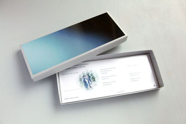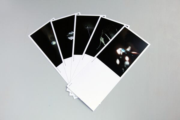 展覧会『She stared at her reflection in the mirror.(彼女は鏡に映った自分をじっと見つめた。)』にあわせて飯塚純が撮り降ろしたヤオイタカスミ、平尾菜美の作品を箱におさめたポストカードボックス。ポストカード5枚とDM、クレジットを同封。限定50部。